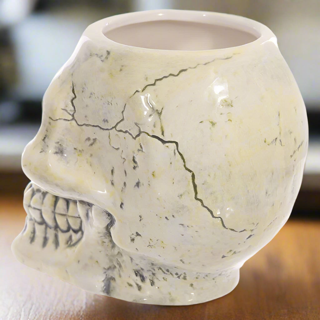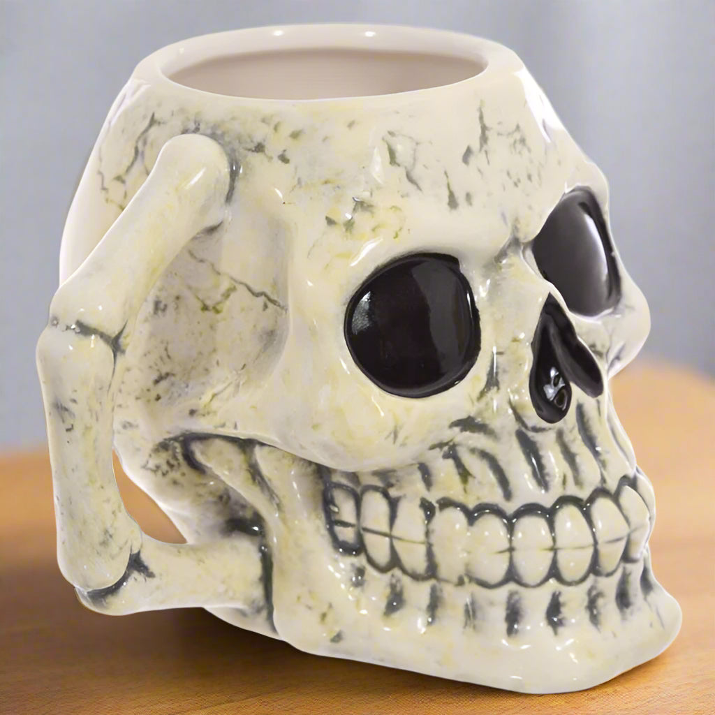 Crafted from premium ceramic with meticulous attention to detail, this ancient skull design brings a touch of macabre elegance to your morning brew. Whether you're sipping your favourite Earl Grey or a strong coffee, this mug transforms every drink into a delightfully dark ritual.