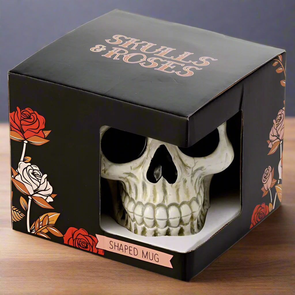 Embrace your dark side with this extraordinary skull-shaped ceramic mug from our popular Skull & Roses collection. This isn't just any ordinary mug - it's a statement piece that perfectly captures the essence of British gothic culture and alternative lifestyle.