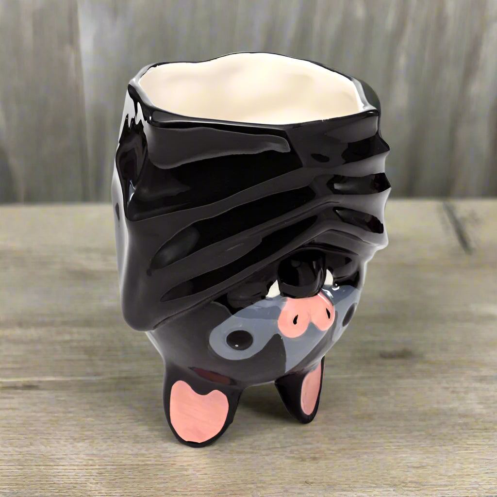 Bring a touch of fun to your tea or coffee break with this brilliant novelty upside-down ceramic mug shaped like a bat! Crafted from sturdy ceramic, it's perfect for sipping your favourite hot drinks whilst showing off your quirky side. The playful upside-down design makes every sip a delightful surprise, brightening your day with a dash of spooky charm.